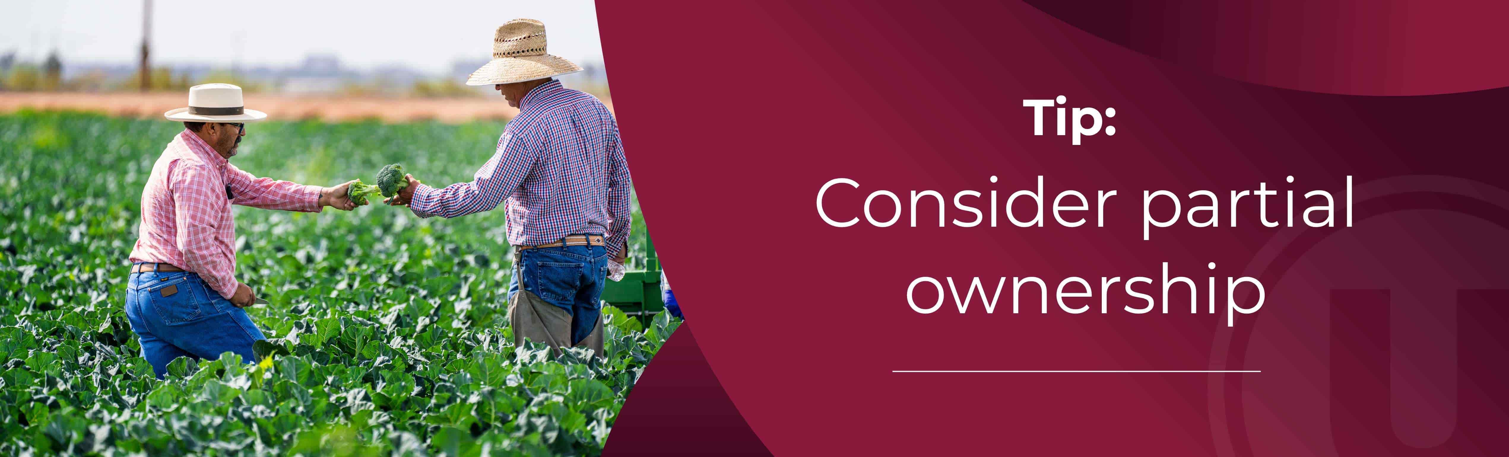 If you're unsure, many farmers begin by leasing land and then transition into ownership as their operations grow and become profitable. Other farmers own certain parcels of land while leasing others, giving them a mix of flexibility and equity-building. Every farming operation is unique. Speak with a trusted lender who is familiar with local market trends and conditions for more personalized insight.